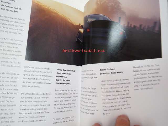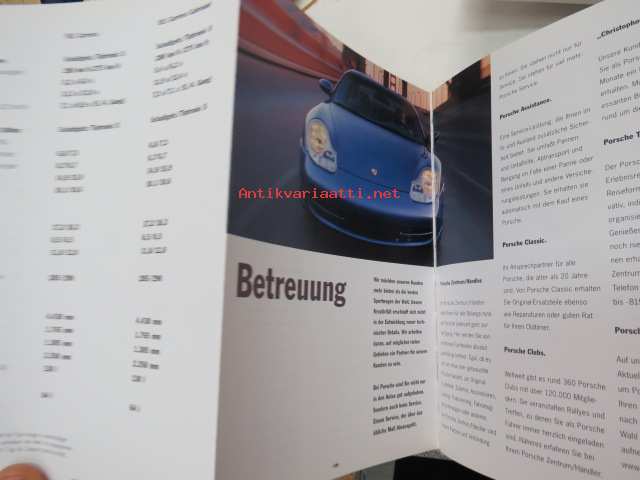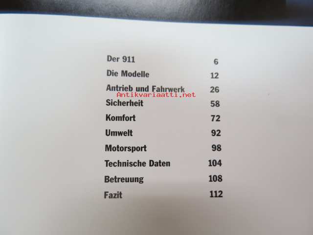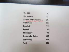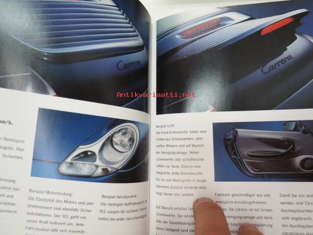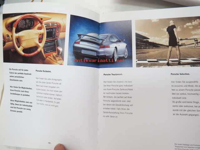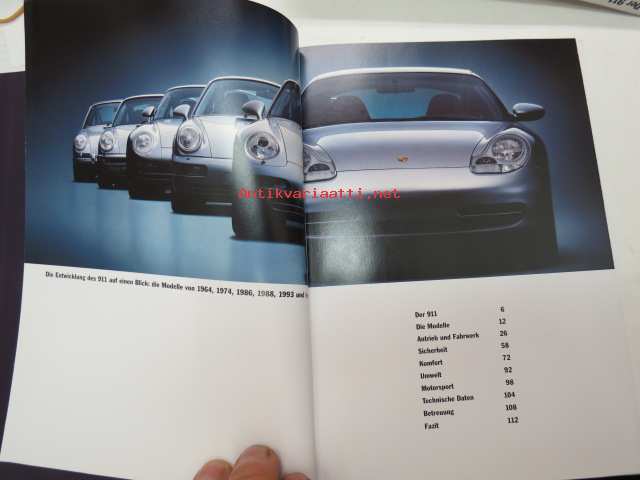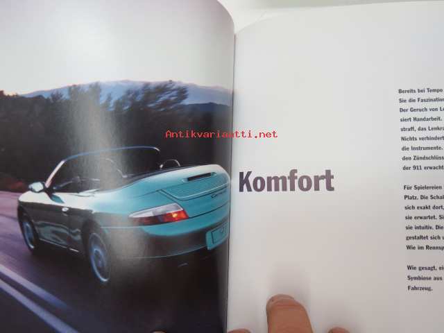 Porsche 911 vm. 1999 -myyntiesite (koko 15,5 x 21 cm, kovat kannet, 113-sivuinen kirja, painettu syyskuussa 1998), saksankielinen