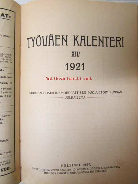 Työväen kalenteri 1921 XIV - Suomen sosialidemokraattisen puoluetoimikunnan julkaisema