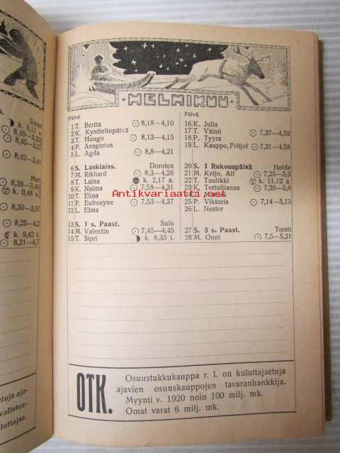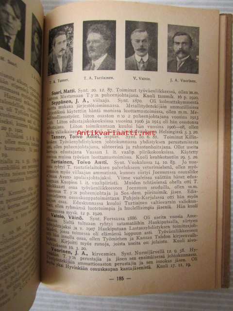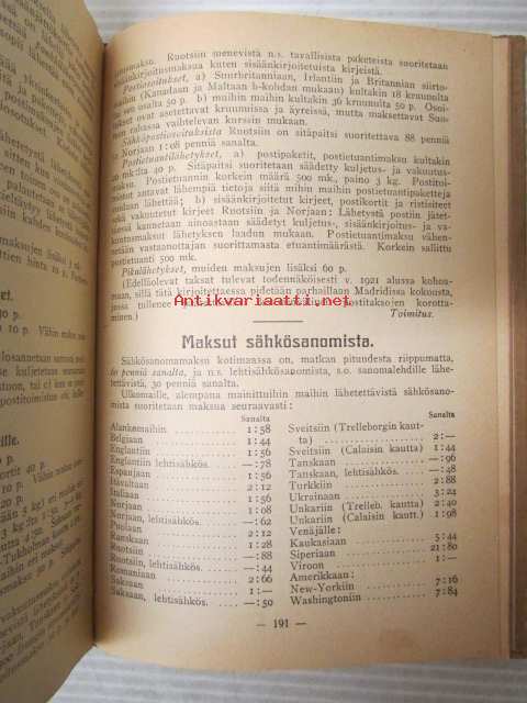 | Saatavilla | 1 kpl | | Julkaisuvuosi | 1920 | | Sivuja | 240 | | Kunto | K2 | | Sidonta/painoasu | Nidottu (pehmeäk.) | | Kielet | Suomi |