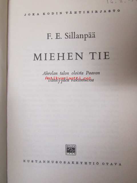 F.E. Sillanpää, Otava, 195312 x 18 cm.