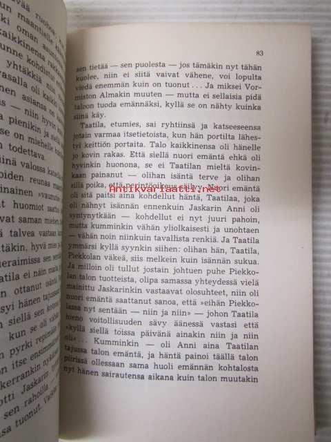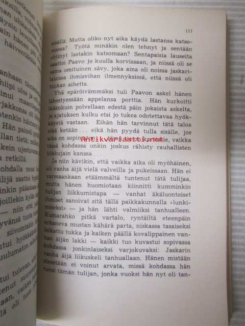 | Saatavilla | 1 kpl | | Julkaisuvuosi | 1953 | | Sivuja | 339 | | Painos | 1 | | Kunto | K2 | | Etu- ja takasivulle on pieni repeämä alareunassa | | Sidonta/painoasu | Nidottu (pehmeäk.) | | Kielet | Suomi |