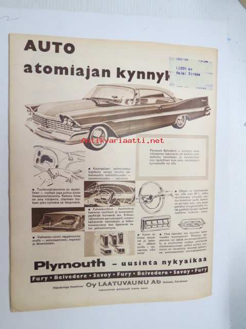 Suomen Kuvalehti 1958 nr 41, ilmestynyt 11.10.1958, sis. mm. seur. artikkelit / kuvat / mainokset; Kansikuva Kirkonmiehet keskenään, Karjalan Puku, Enso keittiö, Makao maitokaakao, Tehora II kirjahylly, Esso, Madamoiselle - Fanet -Asko-tuolit, Maihinnousu Saimaan rantametsiin - pienpuun käyttämiseksi selluloosateollisuuden raaka-aineena, Kansankirkkomme muuttuvassa maailmassa, Kiantoa katsomassa, Tupavuoren pamaus, Kultakönni, Rexona, Milton-savuke, Plymouth-automainos takasivu, ym.