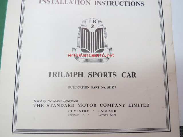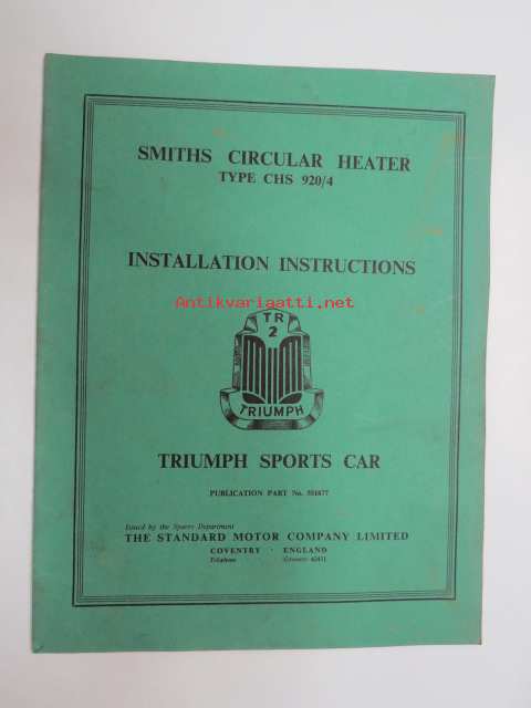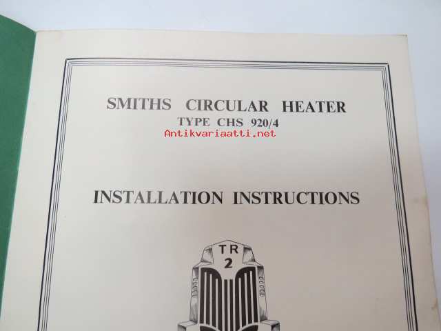 Smiths Circular Heater Type CHS 920/4 - Installation instructions for Triumph TR2 Sport Cars -alkuperäinen englanninkielinen lämmityslaitteen asennusohjekirja +