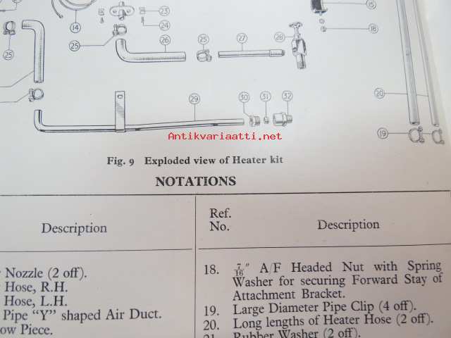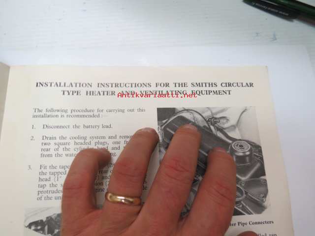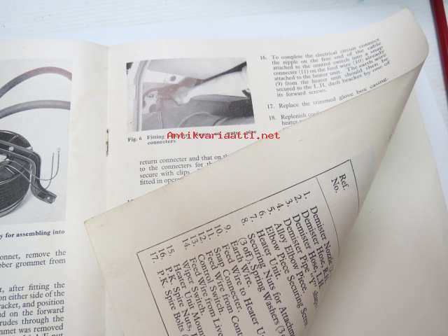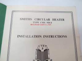 Smiths Circular Heater Type CHS 920/4 - Installation instructions for Triumph TR2 Sport Cars -alkuperäinen englanninkielinen lämmityslaitteen asennusohjekirja + osakuvasto kulttiautoon, näitä ei puissa kasva