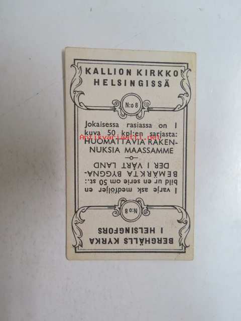 Kallion kirkko Helsingissä nr 8 - Berghälls kyrka i Helsingfors -keräilykortti