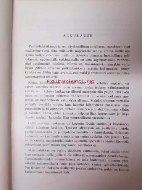 | Saatavilla | 1 kpl | | Julkaisuvuosi | 1962 | | Sivuja | 284 | | Painos | 1. | | Kunto | K2 | | Sidonta/painoasu | Sidottu (kovak.) | | Kielet | Suomi |