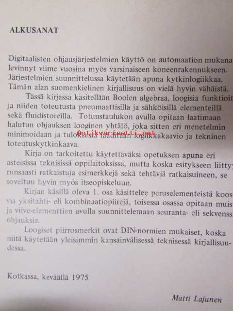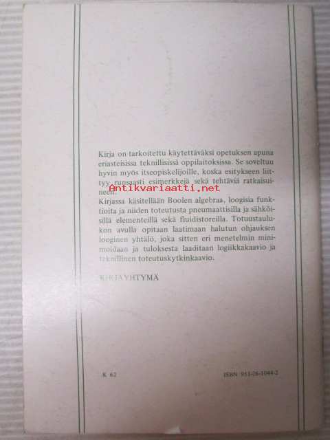 | Saatavilla | 1 kpl | | Julkaisuvuosi | 1975 | | Sivuja | 64 | | Kunto | K2 | | Sidonta/painoasu | Nidottu (pehmeäk.) | | ISBN | 951-26-1044-2 | | Kielet | Suomi |