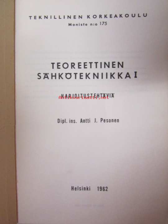 Dipl. ins. Antti J. Pesonen, Teknillisen korkeakoulu, 196215 x 21 cm.