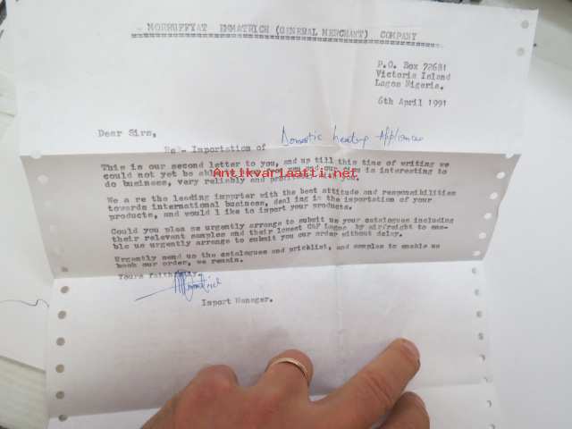 Nigerialaiskirje, huijauskirje, lähetetty suomalaiseen yritykseen