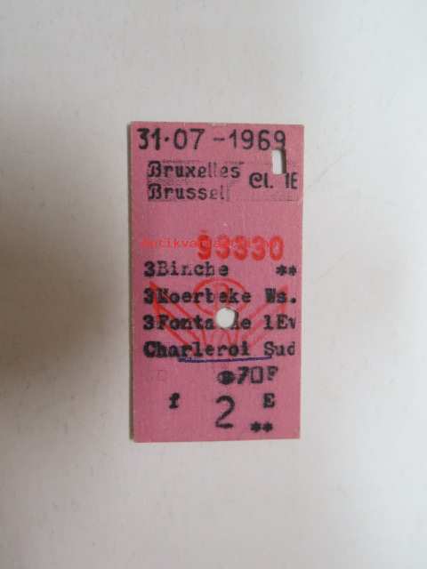 Bruxelles / Brussell - Charleroi Sud 31.7.1969 -train ticket -junalippu