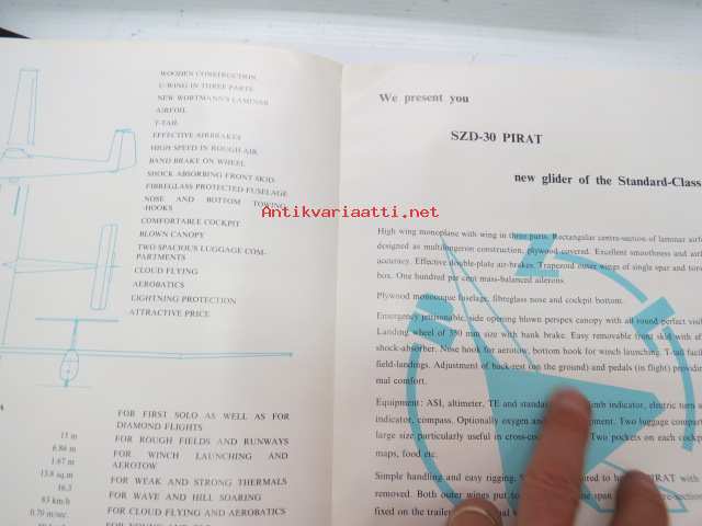 SZD-30 "pirat" Sailplane- sales brochure (ilmailu / lentokone) -myyntiesite, purjelentokone