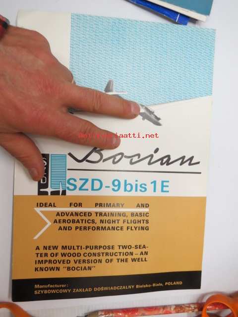SZD-9 bis 1 E Bocian Sailplane (ilmailu / lentokone) -sales brochure -myyntiesite, purjelentokone