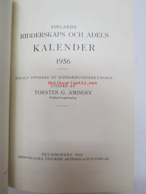 Finlands ridderskaps och adels kalender 1956 - Finlands adelskalender -aateliskalenteri