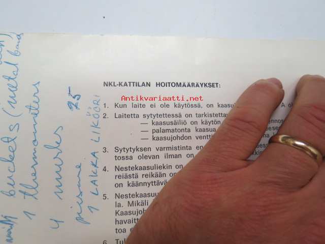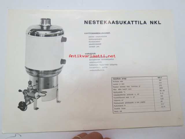 Nestekaasukattila NKL - Manukone Oy -myyntiesite / osaluettelo / käyttöohje