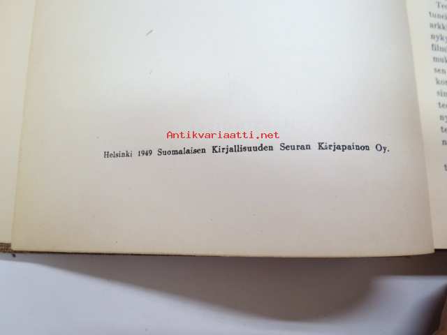 | Saatavilla | 1 kpl | | Julkaisuvuosi | 1949 | | Sivuja | 228 | | Painos | 1. | | Kunto | K2 | | Sidonta/painoasu | Sidottu (kansipaperit) | | Kielet | Suomi |
