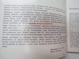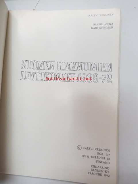| Saatavilla | 1 kpl | | Julkaisuvuosi | 1972 | | Sivuja | 116 | | Painos | 1. | | Kunto | K2 | | Sidonta/painoasu | Nidottu (pehmeäk.) | | Kielet | Suomi |