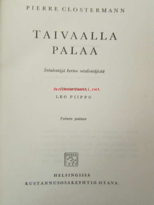 Clostermann Pierre, suom. Leo Piippo, Otava, 195514 x 21 cm.