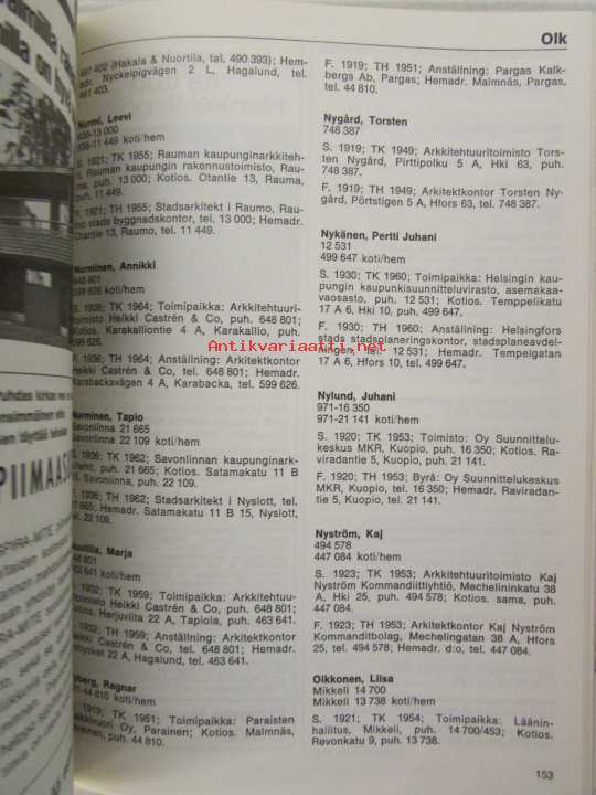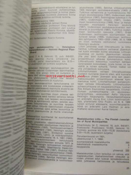 | Saatavilla | 1 kpl | | Julkaisuvuosi | 1969 | | Sivuja | 209 | | Kunto | K2 | | Sidonta/painoasu | Nidottu (pehmeäk.) | | Kielet | Suomi |