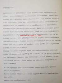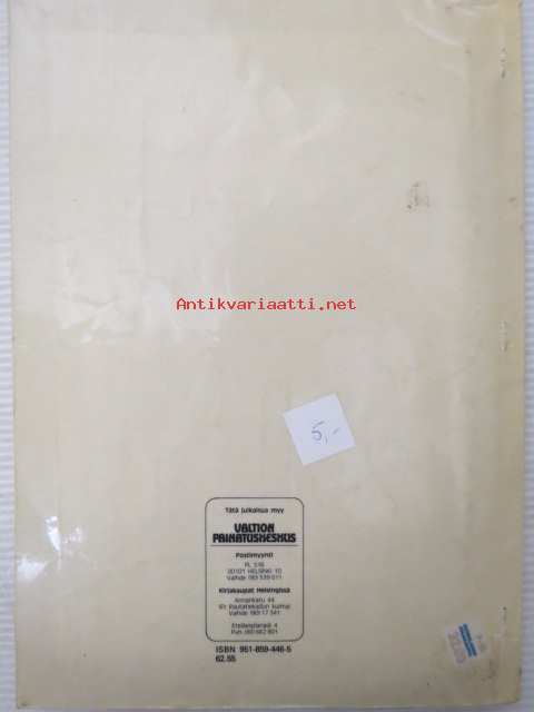| Saatavilla | 1 kpl | | Julkaisuvuosi | 1983 | | Sivuja | 119 | | Kunto | K2 | | Kirjaston poisto | | Sidonta/painoasu | Nidottu (pehmeäk.) | | ISBN | 951-859-446-5 | | Kielet | Suomi |