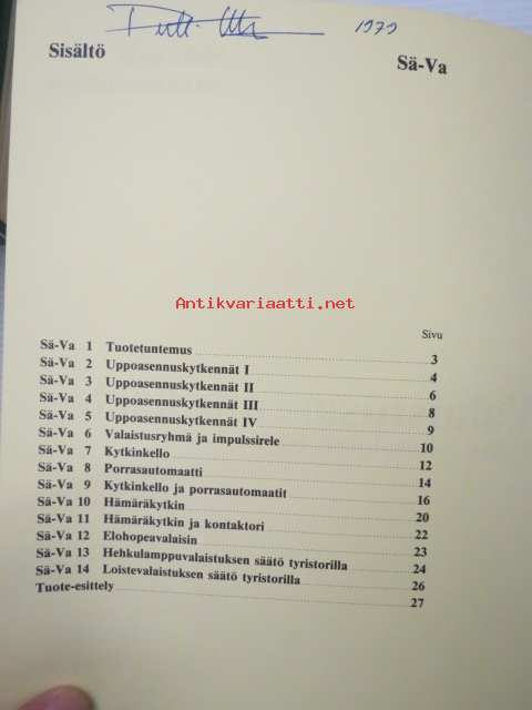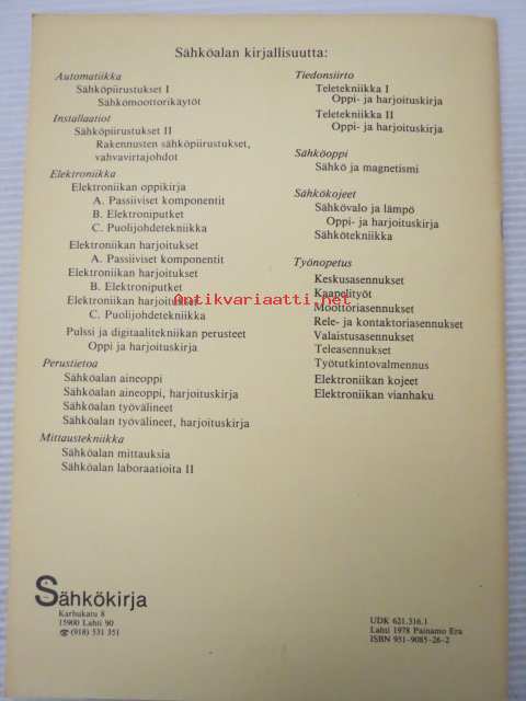 | Saatavilla | 1 kpl | | Julkaisuvuosi | 1978 | | Sivuja | 40 | | Kunto | K2 | | Sidonta/painoasu | Nidottu (pehmeäk.) | | ISBN | 951-9085-26-2 | | Kielet | Suomi |