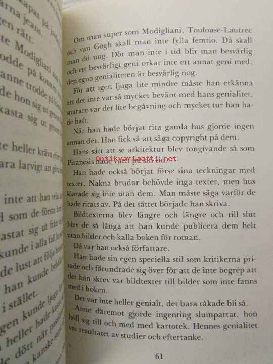| Saatavilla | 1 kpl | | Julkaisuvuosi | 1979 | | Sivuja | 142 | | Painos | 1 | | Kunto | K3 | | Kansipaperi K2 | | Sidonta/painoasu | Sidottu (kansipaperit) | | ISBN | 951-52-0522-0 | | Kielet | Ruotsi |