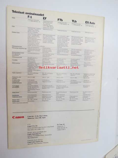 Canon Reflex kamerasarja 1975 -myyntiesite