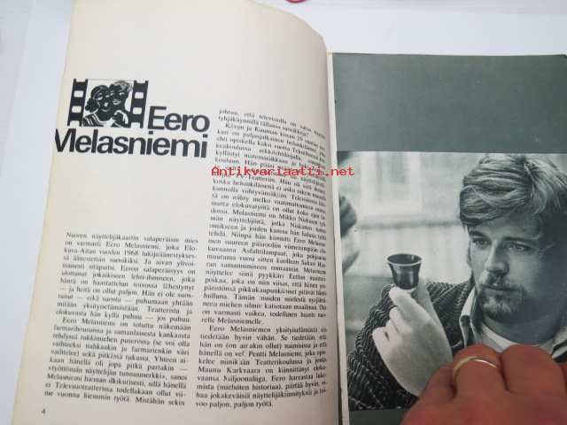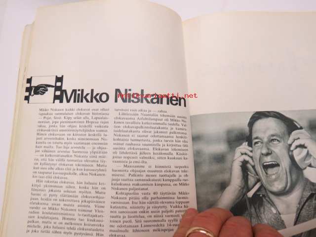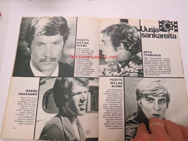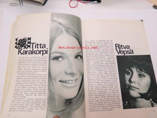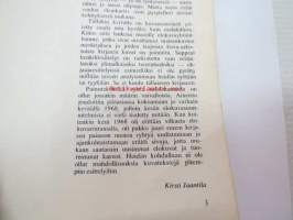 | Saatavilla | 1 kpl | | Julkaisuvuosi | 1968 | | Sivuja | 64 | | Painos | 1. | | Kunto | K2 | | Sidonta/painoasu | Nidottu (pehmeäk.) | | Kielet | Suomi |