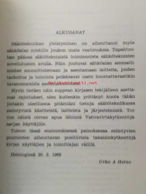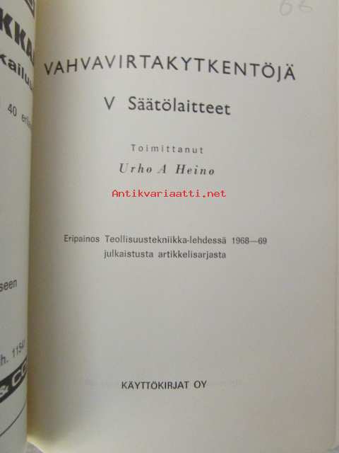 | Saatavilla | 1 kpl | | Julkaisuvuosi | 1969 | | Sivuja | 102 | | Kunto | K2 | | Sidonta/painoasu | Nidottu (pehmeäk.) | | Kielet | Suomi |