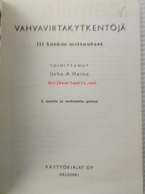 | Saatavilla | 1 kpl | | Julkaisuvuosi | 1972 | | Sivuja | 102 | | Painos | 5. | | Kunto | K2 | | Sidonta/painoasu | Nidottu (pehmeäk.) | | Kielet | Suomi |