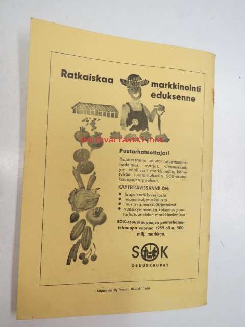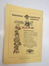 | Saatavilla | 1 kpl | | Julkaisuvuosi | 1960 | | Sivuja | 28 | | Kunto | K2 | | Sidonta/painoasu | Nidottu (pehmeäk.) | | Kielet | Suomi |