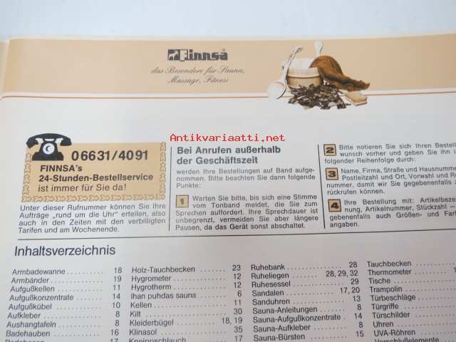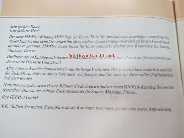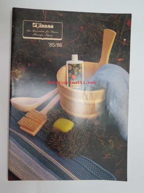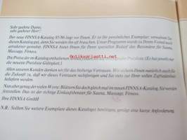 Finnsa Katalog 1985-1986 - das Besondere für Sauna, Massage, Fitness -saksalainen saunojen ja saunatarvikkeiden luettelo, Finnjet-mainos