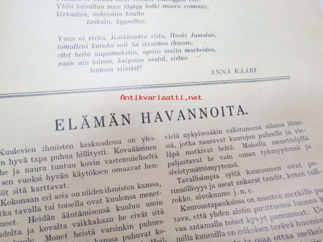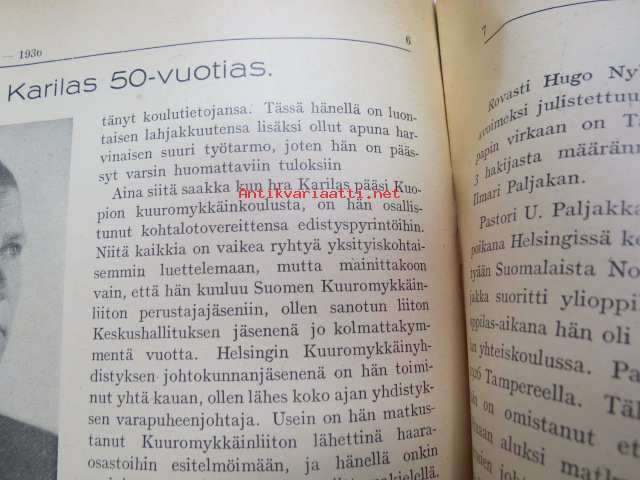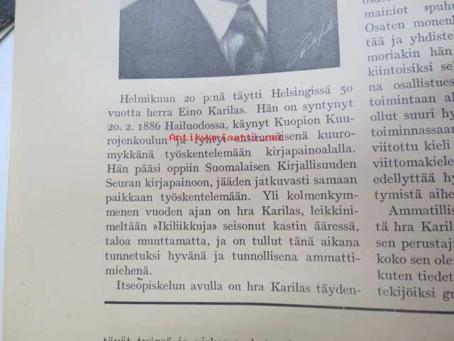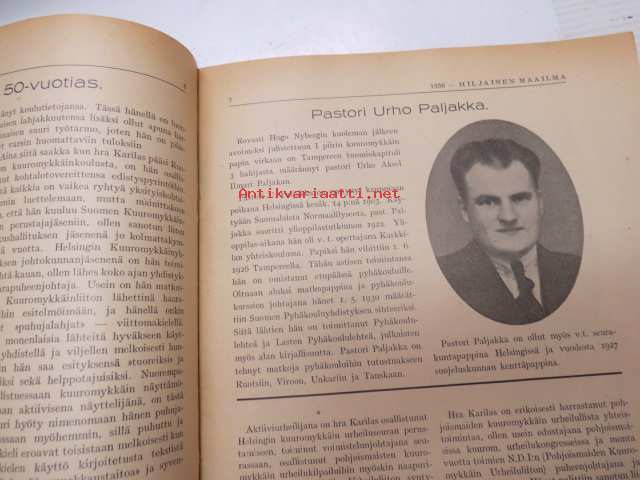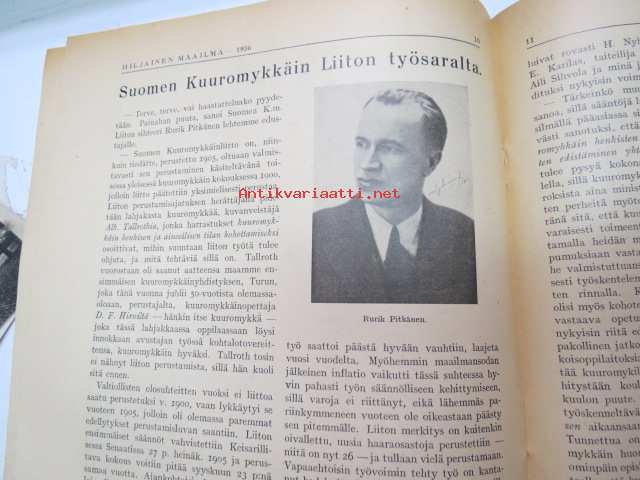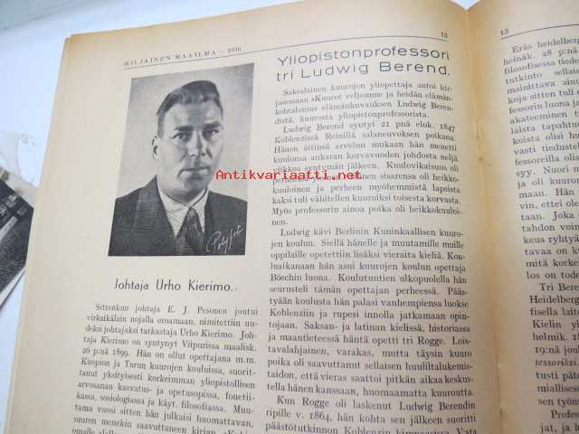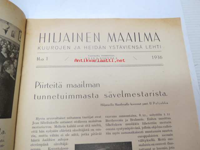Hiljainen maailma 1936 nr 1 - Kuurojen ja heidän ystäviensä lehti, sis. mm. seur. artikkelit; Turun Kuuromykkäinyhdistyksen 50-vuotisjuhla, Piirteitä Sibeliuksesta (kirj. Urho Paljakka), Eino Karilas 50-vuotias, Rurik Pitkänen, Urho Kierimo, ym.