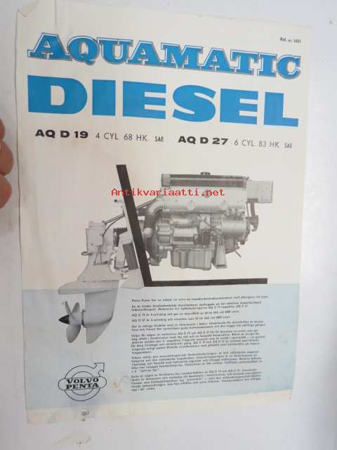 Aquamatic Diesel AQ D 19 4 cyl. 68 hk / AQ D 27 6 cyl. 83 hk -myyntiesite, ruotsinkielinen