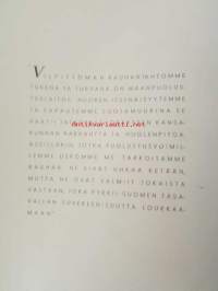 | Saatavilla | 1 kpl | | Julkaisuvuosi | 1939 | | Sivuja | 270 | | Kunto | K2 | | Sidonta/painoasu | Nahkaselkä | | Kielet | Suomi |