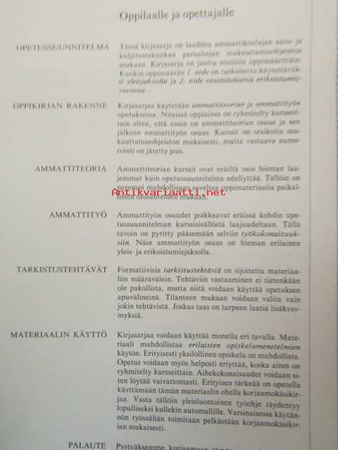 | Saatavilla | 1 kpl | | Julkaisuvuosi | 1987 | | Sivuja | 261 | | Kunto | K2 | | Sidonta/painoasu | Nidottu (pehmeäk.) | | ISBN | 951-1-06058-9 | | Kielet | Suomi |