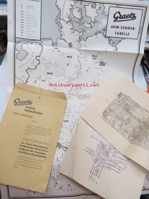 Graetz Radio Fernsehen - lähetysalukartta, piirikaavioita, alkuperäisessä kuoressaan