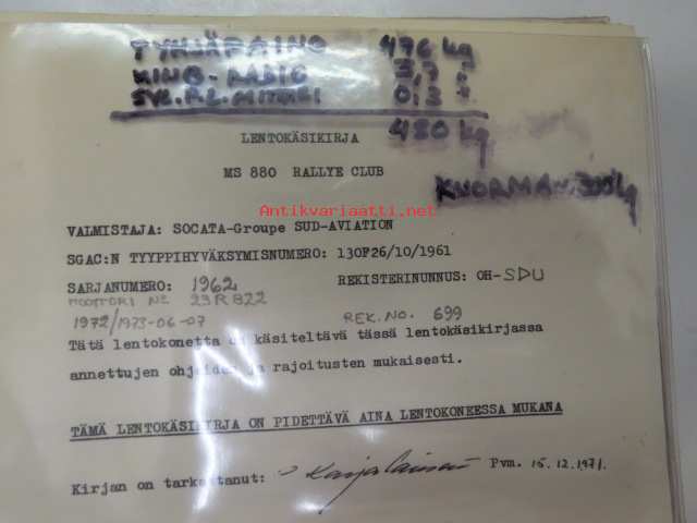 Socvata Rallye Club MS 880 Rallye Club (OH-SDU) lentokäsikirja