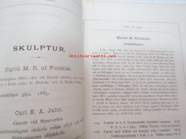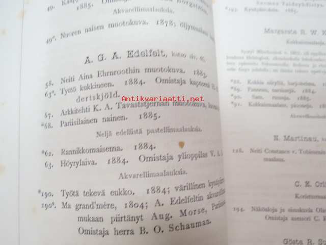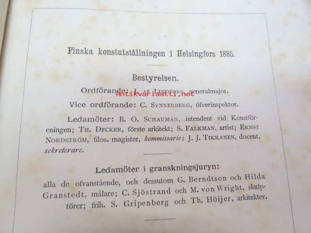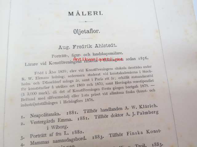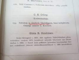 Illustrerad katalog till Finska Konstutställningen 1885 - Kuvillinen luettelo Suomen Taidenäyttelystä v. 1885, sisältää taiteilijoiden henkilö- ym. tietoja sekä teosten omistustiedot
