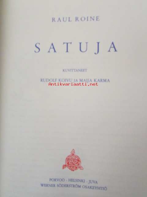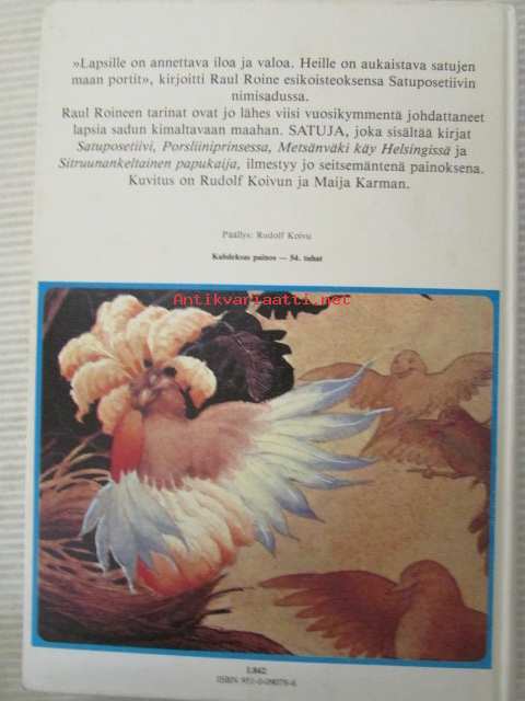 | Saatavilla | 1 kpl | | Julkaisuvuosi | 1981 | | Sivuja | 174 | | Painos | 8. | | Kunto | K2 | | Etukannessa pientä viivoja | | Sidonta/painoasu | Kuvitettu kovakantinen | | ISBN | 951-0-09078-6 | | Kielet | Suomi |