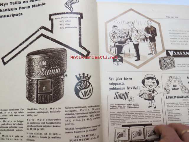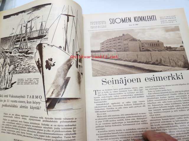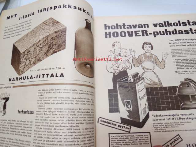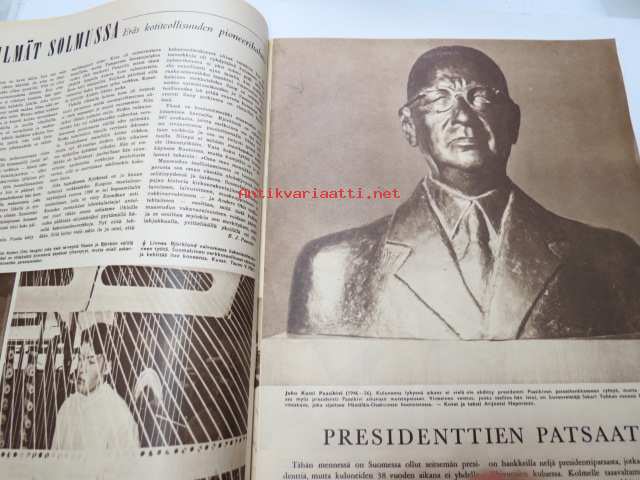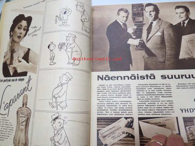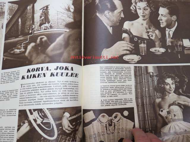 Suomen Kuvalehti 1957 nr 13, ilmestynyt 30.3.1957, sis. mm. seur. artikkelit / kuvat / mainokset; Kansikuva awatityttö Amazonin varrelta, Porin Mainio, Suave, Hoover, Pääkirjoitus - valtio rakennuttaa tolkuttoman kalliita "arkkitehtien unelmakouluja", Presidenttien patsaat, Suurteollisuus pakenee maalle, Korva joka kuulee kaiken - salakuuntelu, Naisten äänioikeushistoriaa Suomessa, ym.