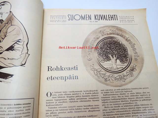 Suomen Kuvalehti 1957 nr 9, ilmestynyt 2.3.1957, sis. mm. seur. artikkelit / kuvat / mainokset; Kansikuva "Sano koira" - huonokuuloiset lapset oppivat puhumaan