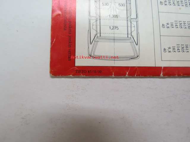 | Saatavilla | 1 kpl | | Julkaisuvuosi | 1985 | | Sivuja | 16 | | Kunto | K2 | | Rei´itetty | | Sidonta/painoasu | Nidottu (pehmeäk.) | | Kielet | Suomi |