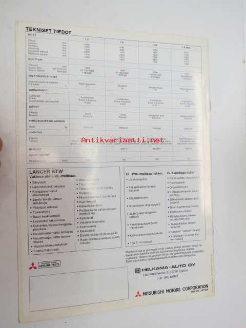 Mitsubishi Motors / Helkama Auto Oy, 198921 x 30 cm.
