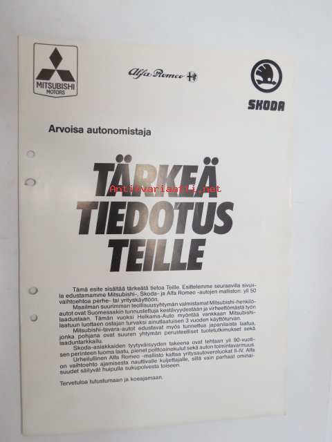 Helkama - Mitsubishi / Skoda / Alfa Romeo mallit -myyntiesite