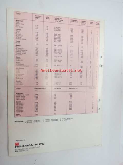 Mitsubishi Motors / Helkama Auto Oy, 198521 x 30 cm.