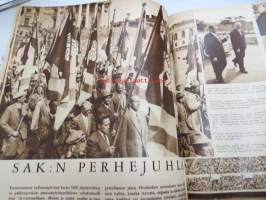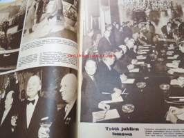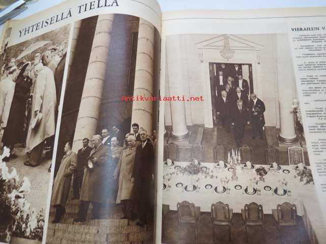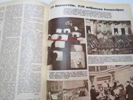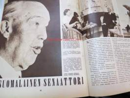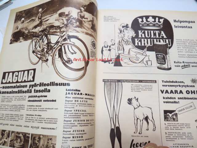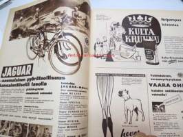 Suomen Kuvalehti 1957 nr 24, ilmestynyt 15.6.1957, sis. mm. seur. artikkelit / kuvat / mainokset; Kansikuva Bulganin & Hrutsev Suomessa, Jaguar-polkupyörä,