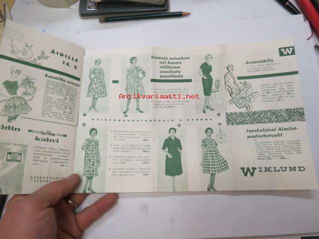 Wiklund äitienpäivälahjoja -myyntiesite 1960-luvulta