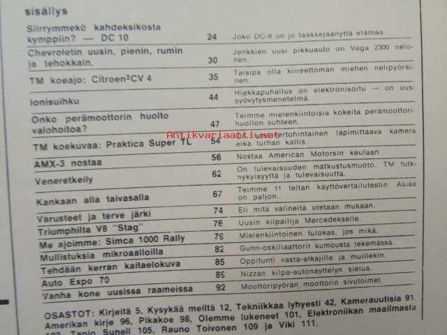 Tekniikan Maailma 1970 nr 11, sis. mm. seur. artikkelit / kuvat / mainokset; Koeajossa Citroen 2CV4, TM KoekuvaaPraktica Super TL, AMX-3, Triumph V8 "Stag", TM ajaa Simca 1000 Rally, Chervolet Wega 2300, Auto Expo 70, Teltta testit, DC-10, Kalastajamallinen Maritim 28, , katso sisältö kuvista tarkemmin21 x 29 cm.