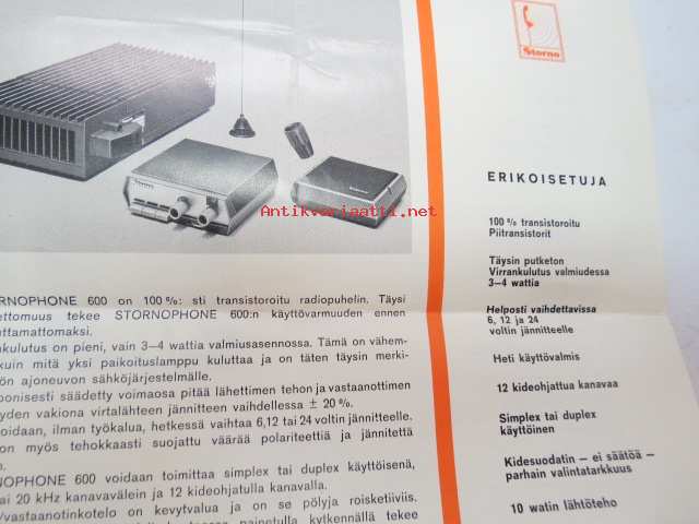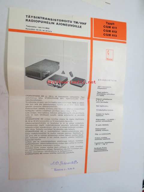 Stornophone 600 CQM 611, 612, 613 täystransistoroitu TM/VHF radiopuhelin ajoneuvoille -myyntiesite