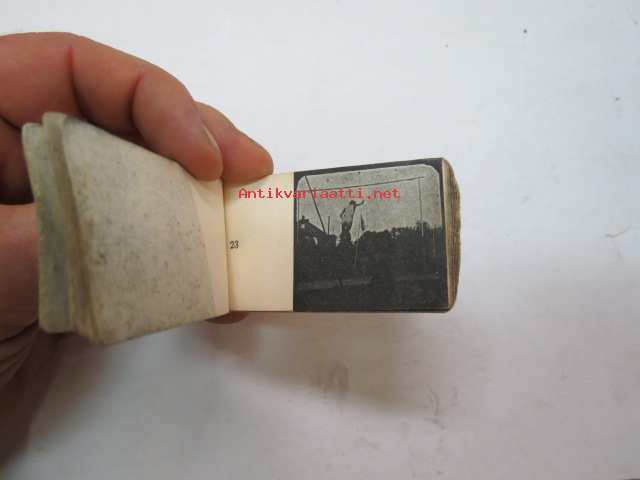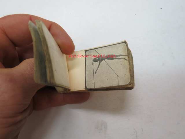 Korkeushyppy - kädessä plarattava vihko eri kohtiin kuvattuine hahmoineen, jolla saatiin "elokuva" / animaatio - liikkuvaa kuvaa, elokuvamainen efekti